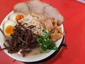 トッピング全部乗せをいただきました~。美味しかった。しかし、スタッフに「屋号の由来」たずねたら、「わかりません」って。残念