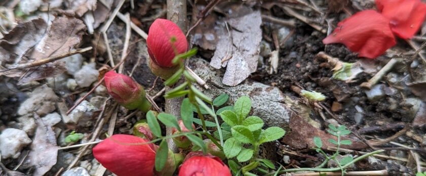 さて、この健気に地面に咲く木瓜をこのままにしておくのは可哀そう。近く鉢に植え替えをしようと思っている。