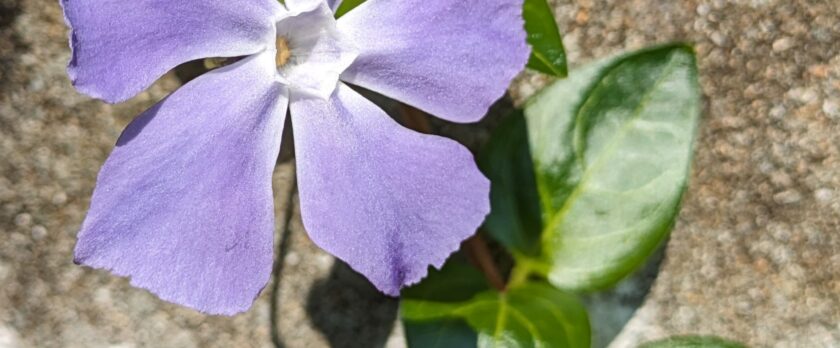 ツルニチニチソウ。壁などにそって茎が立ち上がり春に咲く。 ツル ニチ ニチ ソウ