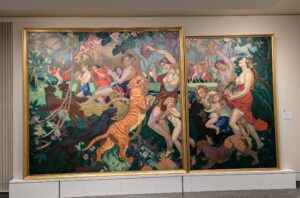 モーリス ドニの作品で 「ベンガル虎 バッカス祭」は 虎やジャガーが 犬も 描かれて 女性たちと戯れている 楽しそう