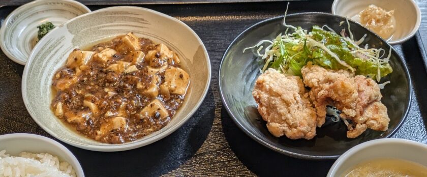 麻婆豆腐と唐揚げのランチをたべた 私は 辛さには苦手 以前はまだ辛いものが食べれたが 年をとるにつれて辛さに弱くなっている