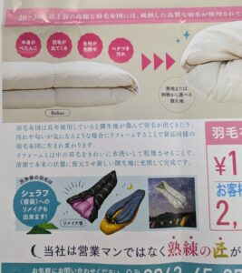 こんなチラシを目にした 羽毛布団のリフォーム リメイク
