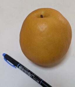梨をいただいた 立派 サイズがわかるように ペンをおいてみた 大きい ずっしり いただきます